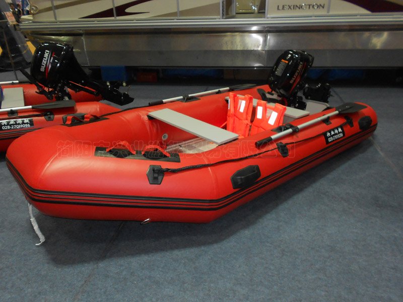 興業(yè)游艇公司生產(chǎn)的鋁合金底橡皮艇具有可靠的安全性,因整艇的充氣浮管被隔成